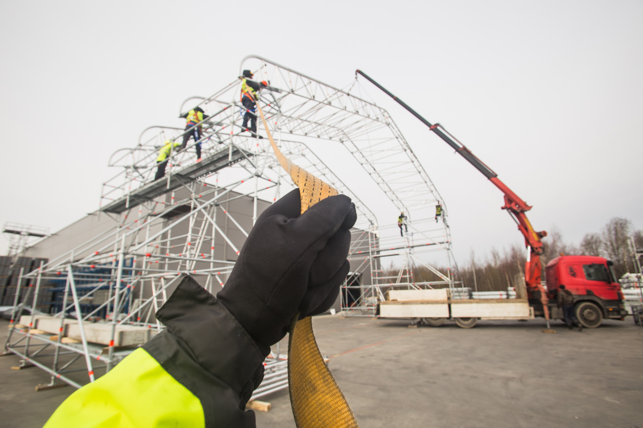 Монтаж тимчасових дахів, наприклад, Keder XL із тентами для захисту від погодних умов.